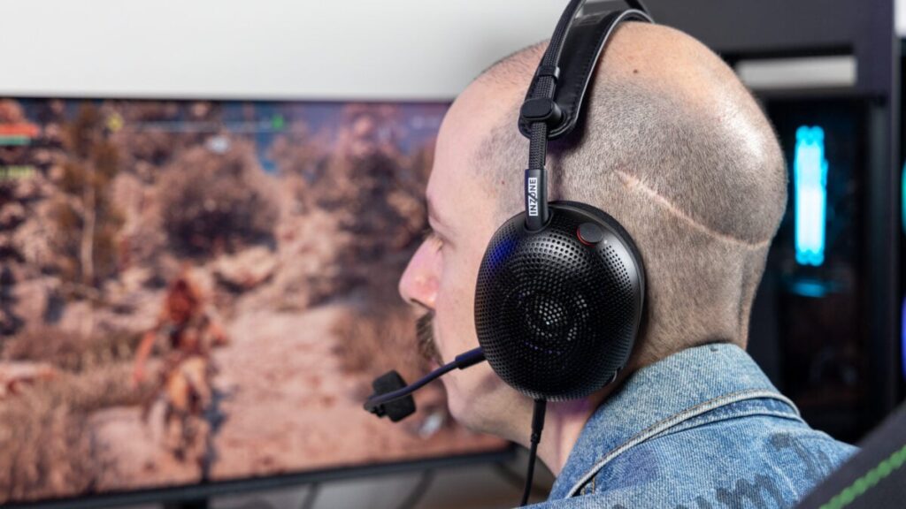 Les casques à dos ouvert ne servent pas uniquement à alléger le poids ; ils offrent aussi une meilleure respirabilité et vous permettent de rester conscient de votre environnement puisque, eh bien… l’air circule. Comme des écouteurs sans fil à oreille ouverte, le design ouvert du H6 Air vous donne définitivement une impression d’avoir un pied à l’intérieur et un autre à l’extérieur de votre son gaming. Bien sûr, il arrive que l’ANC soit utile pour bloquer les bruits parasites, mais j’ai trouvé que la possibilité de baisser le volume tout en continuant à percevoir ce qui se passe autour était un avantage majeur. Je pouvais encore entendre ma partenaire pendant que nous étions sur le canapé, et je pouvais même entendre mes collègues lorsque je testais le Inzone H6 Air au bureau.